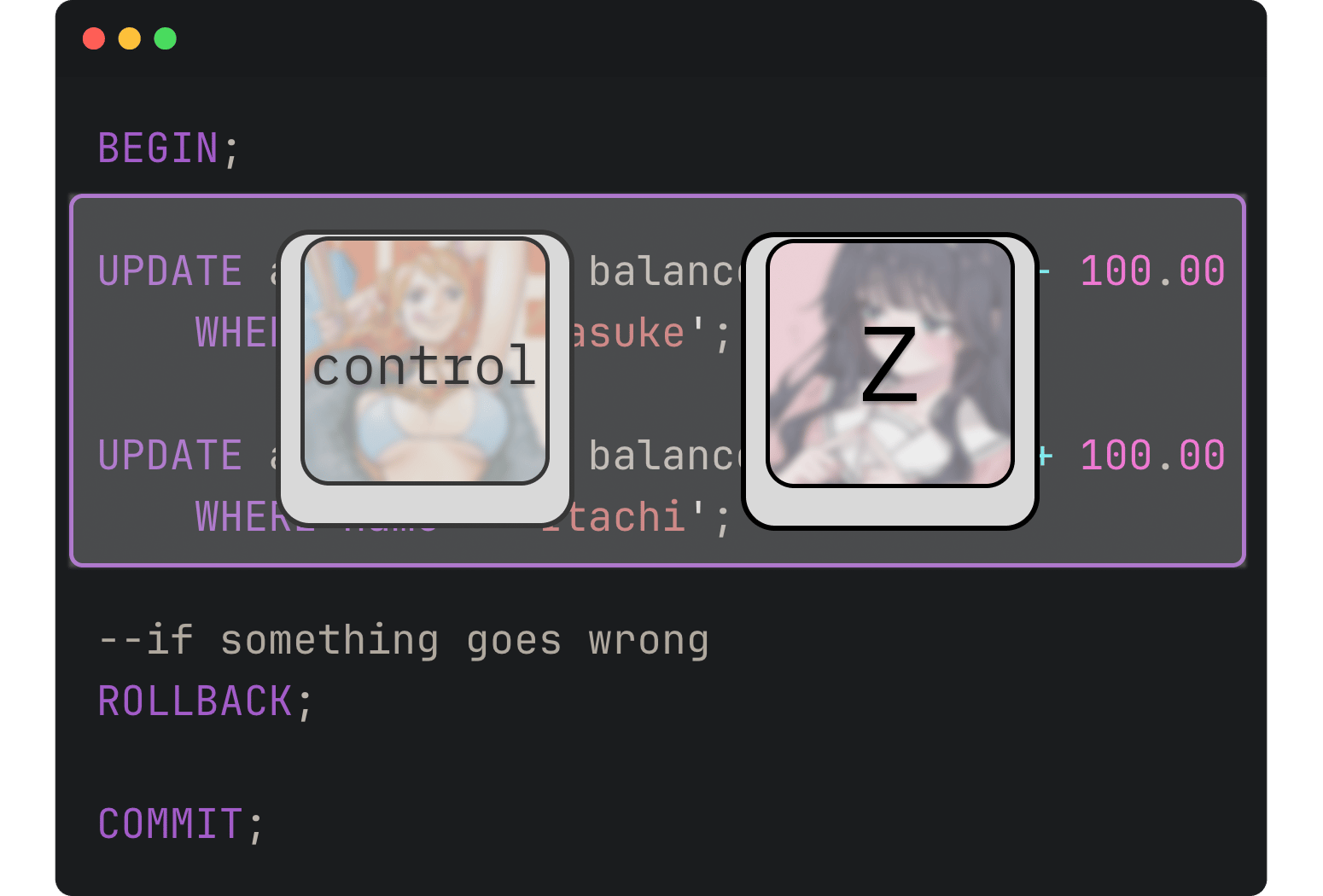 WHERE name = 'Itachi';Actions inside a transaction are temporary.