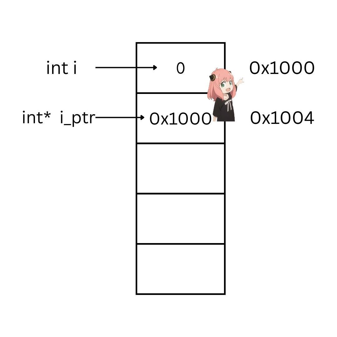&i; //0x1000Assign that value to a new variable called i_ptr.