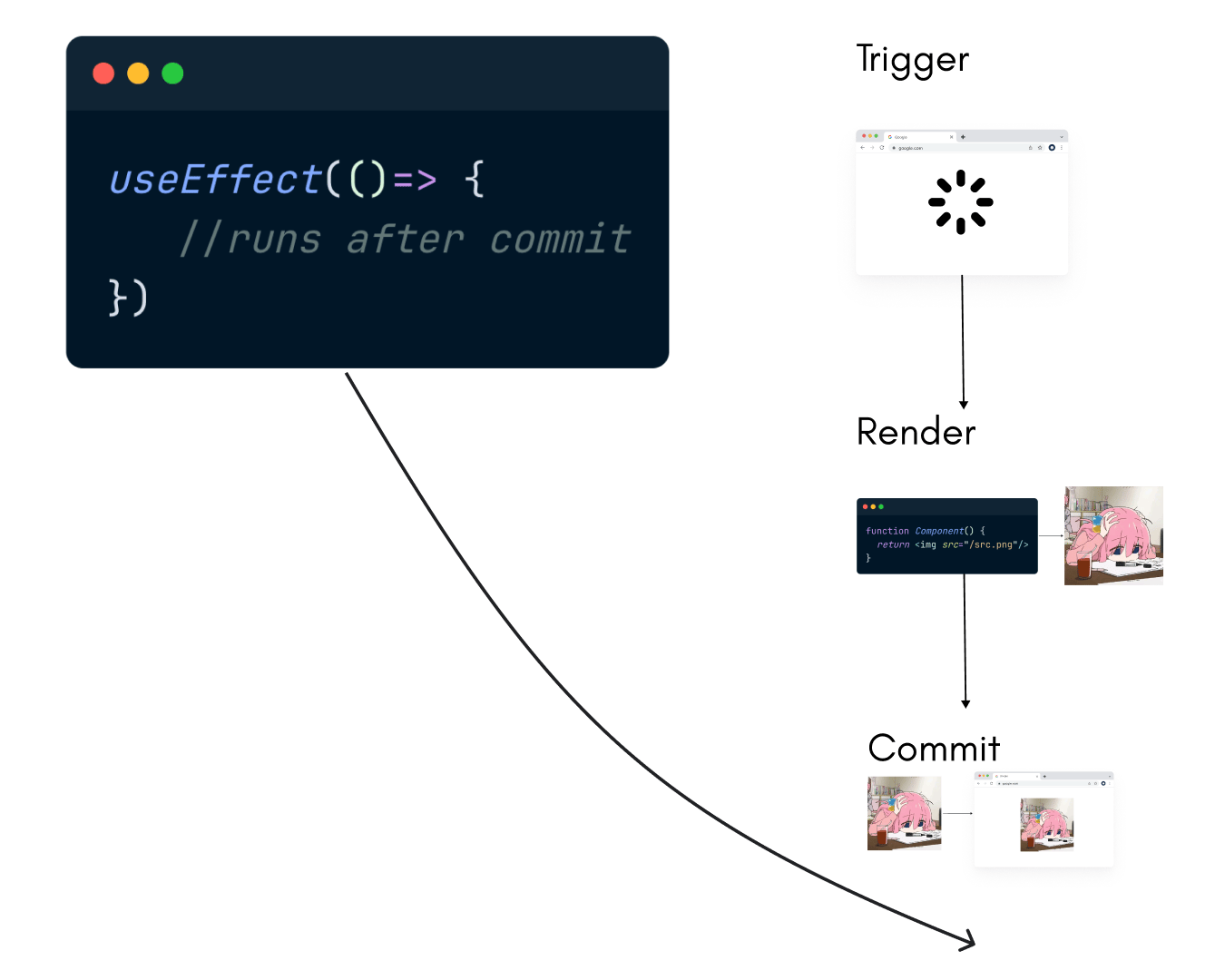 useEffect runs every time the component rerenders, which happens whenever there’s a state or props change.