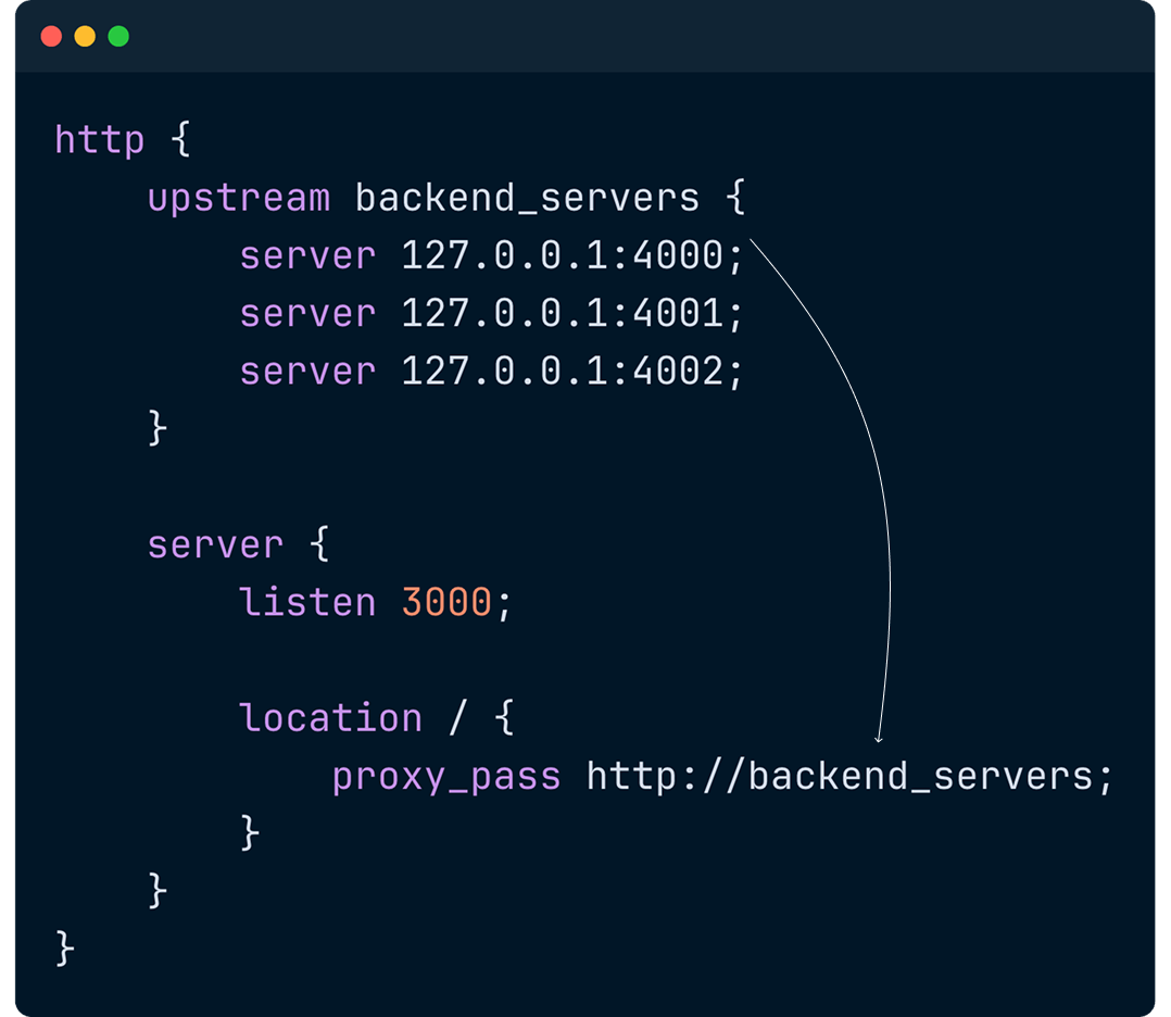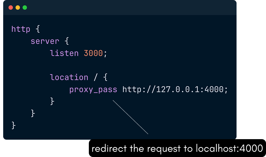Instead of handling the request, we pass it to a server with the IP address “127.0.0.1:4000.”