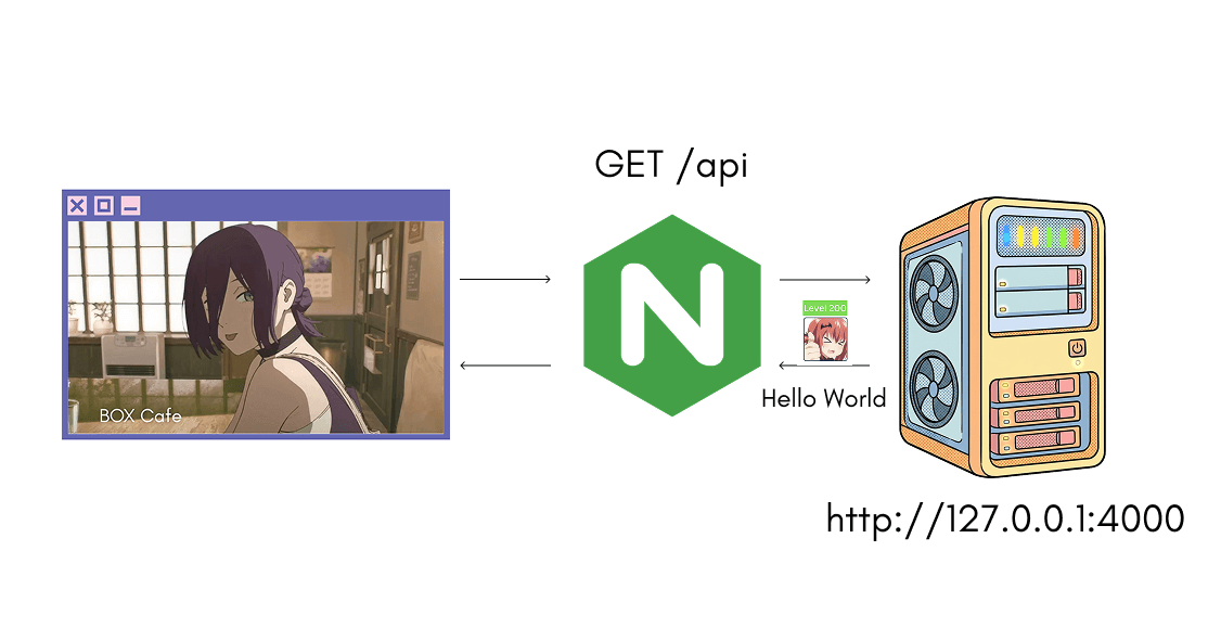 A more common use case of Nginx is a reverse proxy.