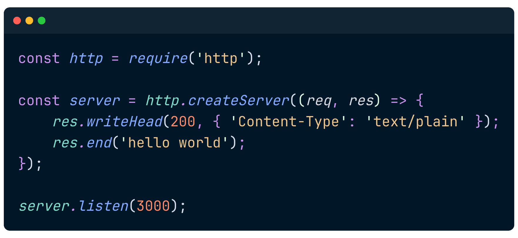 Let’s create an HTTP server that listens on PORT 3000.