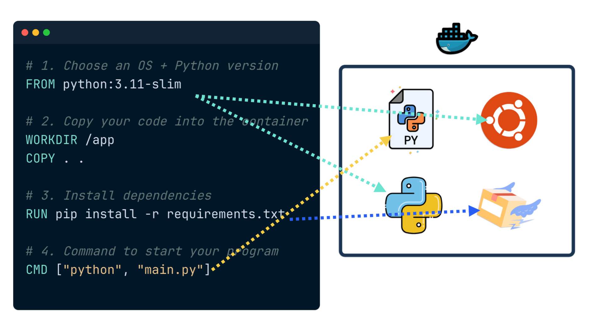 To make a container, first create a Dockerfile (the filename is literally Dockerfile).