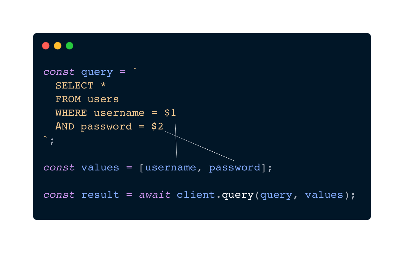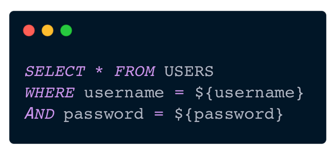 AND password = ${password}`Bad idea. Instead, use a prepared statement.